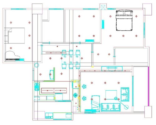 規劃發想於先將重點區塊(客廳/餐廳/廚房/玄關)天花板部分作構圖的基礎,因為現狀格局不做變更基礎下餐廳上方又被2根交錯橫梁切割而且樓層位於12樓有消防管線高度限制因此提案建議採用將空間以不對秤比例加上間接燈光照明光源配置讓空間產生不同層次感 , 減低因橫樑切割造成的區域不平衡感.